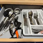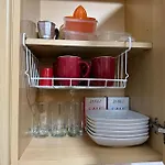 Oltre a servizi per la preparazione di tè/caffè, gli ospiti di quest'appartamento possono usufruire di una cucina completamente attrezzata completa di un microonde e un frigo.